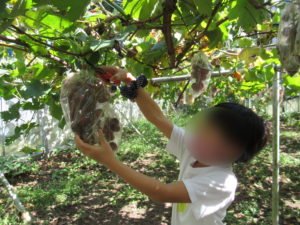 10月3日土曜日、来夢では園外活動としてぶどう狩りに行きました。農家の方の説明を聞きながら、ぶどうにはたくさんの種類があることがわかり、何百種類もあるという想像以上の種類に子ども達もびっくり!!説明を聞いた後は道具を借りていざ挑戦!実のなっているギリギリのところを切るのではなく、枝を残して切るなど、やってみて初めて分かることがたくさんでした。チョキン!と枝を自分で切れたことに達成感を味わうことができました。農家の方々にお礼を言い、自分達の取ったぶどうを袋に入れてニッコリ♪楽しく、そして貴重な体験になりました★