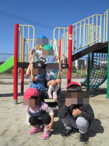 11月3日(火)に園外活動として園児バスで原口中公園へいきました。天候にも恵まれ、お子様もとても楽しみにしておられました。出発前には、施設に遊びに来てくれていたグリブーに会う事が出来、握手をして皆で写真を撮りました。公園に着くと一般の方も遊んでおり、遊具で遊んだり、お子様同士で声を掛け合い一緒に鬼ごっこをして遊ぶ姿も見られました。途中、電車が走っているところも見る事が出来、とても嬉しそうな表情を見る事が出来ました。公共の施設を使用する事で、公共の場の使い方やルールを守る事を学ぶ機会になりました。
