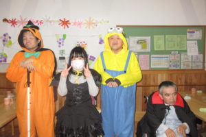 清和グループホームでは11月1日に雰囲気だけ味わってもらおうとハロウィン仮装を行いました。数少ない衣装の中から着たい衣装を選んでいただき写真撮影を行いました。ミニオンやパンプキンマン・魔女など仮装を行いました。中々外出・外泊が出来ない中微々たるものでしたが、「楽しかった」「来年も着たい」「来年はお菓子頂戴ね!」など様々な声が聞く事が出来ました。来年は今年よりもバージョンアップしたものを提供したいと思います。