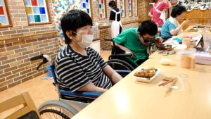 今回は、ほっともっと弁当を選びました。お弁当となると、食欲が増すのかいつもより多い量を選ばれる方々がいっぱいでした。でも美味しいので簡単に胃袋に、入っていました。皆さんの食欲の勢いは落ちません(笑)毎回ですが、わがままディメニューを聞いてきた後は、いつがわがままディ?の日ですか?の質問の声が良く聞かれます。外出が出来ない今は、少しでも気晴らしに外食気分を味わって頂きたく思っています。皆さん食欲が増す香りに笑顔と活気が溢れていました。次回も楽しい企画を提案していきたく思っています。