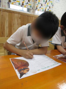 10月22日(金)に来夢ではこころの学び活動を行いました。今日あった事を5つ書き上げて、そのことが嬉しかったのか、困ったのか、何かを言われてどのように感じたのかなど学年別に机を分けてワークシートに書いてみました。単純に嬉しかっただけではなく、どういうことが嬉しかったのかなどカッコ書きを増やす事で掘り下げていきました。自分の気持ちを表現した後は次にどうしてみたいかなど、先の事も考えながら文章を作る練習もしています。今日は何があったかな?その時どんな気持だっただろう?など自分自身の頭にある出来事を振り返って考え、友達同士で意見を交換し合ったりと自主性や考える力を養うことができた活動となりました。