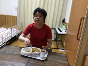 8月最終の日曜日。パソ松ヶ尾館正面玄関横にキッチンカーがやってきました。事前に利用者様に注文を受けていたせいか、2~3日前から「日曜日、キッチンカーだね~」と楽しみにされていましたが、コロナウイルスの感染予防のため職員便で各居室へお届けとなりました。カレーやチーズトマト鶏飯、わらび餅ドリンクにフライドポテトなどなど(一番人気は牛筋カレー♪)キッチンカーならではのメニューに舌鼓を打ちつつ、「美味しかった~、また来てくれるかな?」と次回の催促の声も聞かれるなど大好評のランチタイムでした。次回も(?!)、乞うご期待を!!