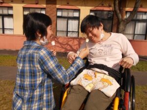 11月12日(土)エルディア松ヶ尾では、中庭で焼き芋パーティーをバーベキュースタイルで開催しました。この日は11月とは思えぬ日差しと暑さで、焼き芋づくりにはチョット厳しいお天気でしたが、久々の外での活動なのと、焼き芋食べたさで暑さをものともせず焼き上がるのを待っています。すると、マシュマロの差し入れがあり、マシュマロの炭火焼きが先にでき上り舌鼓。予想外の食べ物に皆大喜びでしたが、さらにソーセージまで出てきてテンションマックス。とても楽しいひと時でした。