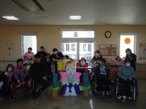 令和5年を迎えた、新年初の慶会で、日本の伝統的な正月遊びには欠かせない凧制作を行いました♪。カラフルな画用紙を用意し、骨組みをしっかりと組んで、今回の凧には、今年の干支である【卯】の飾りを貼りつけて~縁起もいい綺麗な仕上がりとなりました♪。当日はあいにくの雨空でしたが、ご自身の凧を皆さん手にされながら、嬉しそうににらめっこをされたり、記念撮影をされたりをお正月の風物詩に思いを寄せていらっしゃるようでした。