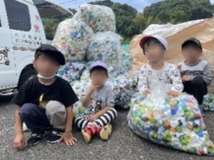慶生会ではsDGSでペットボトルのキャップを集め、一定量溜まると工場へ持っていっております。毎日キャップを持ってきて下さるお子様もいらっしゃり、どんどん溜まっていくキャップに喜んでおられました。そこで・・・普段は職員のみで回収業者に持ち込むところを、お子様方と一緒にできたらと思いました。キャップの入った重たい袋を協力して持ち上げ、じゃーと入れます。お子様方は「こんなに!たくさん!」と大興奮でした。今回は全部で約5万6千個、130キロ、これはポリオワクチン65人分になるそうです。今後も継続してこの様な経験ができるようにしていきたいです。