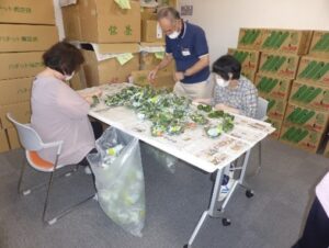 袋を破いて、傷んだピーマンが無いか確認し、再度段ボール箱へ入れる、作業で、単純ではあるのですが、たくさんのピーマンに始めは皆さんびっくり☆されていました。しかし、呑み込みの早いビレイⅡの皆さん、慣れてくると、「このピーマンは美味しそう」「このピーマンはどこに持って行くのだろう?」とピーマンの話をしながら取り組む余裕が出てきていました♪流石です!!