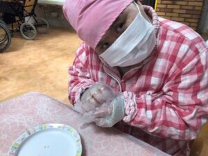 コルテでは7月24日(木)に慶会(7月度合同誕生会)を行ないました。今回は午前におにぎり大好きな対象利用者様のご希望に応えておにぎり作りを行いました。おかか、鮭、昆布、利用者様それぞれ好きな具を選んで作りました。午後からは射的ゲーム大会を行ない。的をよく狙って、撃ち落とした点数を競いました。的には10.~100点まで点数が付けられていて、大きい点数を打ち落とすたびに大きな歓声が上がって盛り上がりました。点数が高い利用者様から順番に景品を選んでいきました。その後は美味しいデザート食べようの会を行い、パリジャンのケーキを皆様美味しそうに上がられました。終わってからも景品を見てニコニコしながら喜ぶ様子が見られ今回も満足の慶会となりました。(*^_^*)