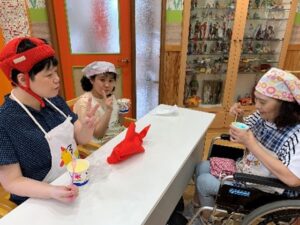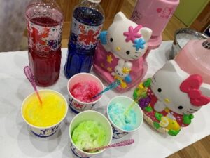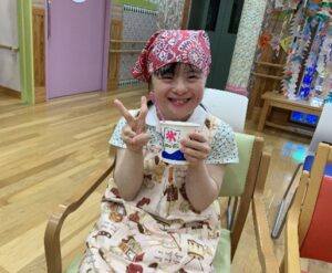 喜々では夏らしく手作りのかき氷を行いました。かき氷機はボタンを押して自動のタイプと手動で回すタイプの2種類を用意して好きな方を使用して作っていただきました!シロップはいちご・レモン・メロン・ブルーハワイの4種類から選んで頂き、お好みで練乳をかけて召し上がりました。利用者様は向かい合って座って談笑されながら楽しまれカメラを向けると笑顔でピース✌してくださいました。夏らしい活動や夏にしかできないイベントをたくさん考えて利用者様が喜々に毎日通所するのが楽しいと言ってもらえることがとても嬉しく思います🥰