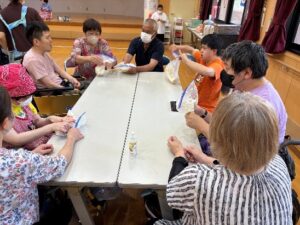 8月30日はパソ全体で取り組む行事として「うどん作り」を実施しました。エルディアでも複数のご家族に参加いただいて、うどん作りに挑戦ですしました。コンセプトとしては汚れずに簡単に美味しいうどんを作るです。