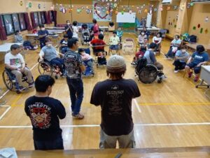 車椅子の方もいらっしゃるので、すべての方が参加できる内容で、レッスンが始まると皆さんノリノリで体を動かされていました。