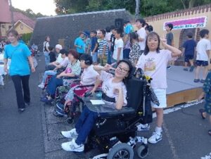 その中でエルディアの皆さんの手話と歌の時間が刻々と迫って参りました。これまでも、人前で何度も歌ってきたエルディアの皆さんたちは、緊張よりもある種の自信さえ、感じられました。合唱が始まると大きな歌声と覚えた手話で披露し、皆様から沢山の拍手をいただいておりました。そして薄暗くなった夜空に、お待ちかねの花火が過ぎ行く夏の空を照らし、今年のサマーフェスタを締めくくるのでした。