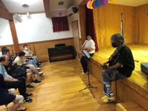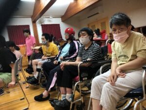コルテでは9月6日(土)にチャレコと合同でコンサートの鑑賞会がありました。場所は中山児童館の2Fのステージで行われました。特別支援学校の先生方が、指遊びも含めて楽しい歌と演奏を1時間にわたって披露してくださいました。利用者の皆さんは、曲に合わせて手を動かしたり、体いっぱい動かされる方もいらっしゃって皆さん表情良く、とても盛り上がりました。また遊遊の利用児も参加され、いつもはなかなかできない交流を楽しみました。
