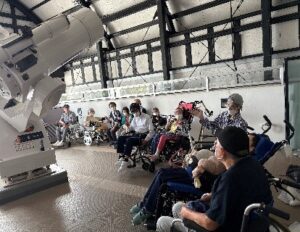 9月28日(日)、パソ松ヶ尾館では園外活動を実施しました!今月の行き先は川内に決定(^_-)-☆朝早くから大雨が降り、「園外いけるかな」と心配そうな利用者のみなさんたちでしたが、利用者さん手作りのてるてる坊主のおかげか出発後に雨は止みお昼には晴れ間がみえてきました!今回のランチはsキューブホテルにてスペシャルランチ!新鮮なお刺身をはじめ、さくっとしたてんぷらやとろとろの角煮など盛り沢山(^^♪あまりの美味しさに笑顔があちらこちらで溢れていました。美味しい食事の後はせんだい宇宙館へ!太陽が見えるサングラスや大きな望遠鏡をみて楽しまれていました☺