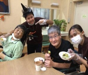 10月18日(土)、パソ松ヶ尾館では遊Ⅱと合同で焼き芋大会を実施しました! パソ利用者も子供たちと触れ合うことで、普段見られない表情を見る事ができました。実際に、芋をひっくり返す体験をしたり、ひっくり返した芋を食べたりと貴重な体験ができたと喜んでいました。また、パソ利用者から児童の利用時へ、利用児からパソ利用者へプレゼント交換もありました!事業所を超えての交流ができ、ご利用者様やご利用児様とても楽しまれておりました!