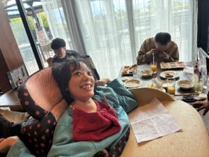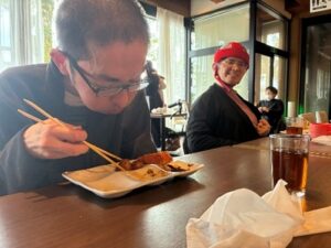 11月18日火曜日にパソ中山の通所では合同で城山観光ホテルでランチバイキングを頂きました。施設から40分程で到着。ホテルは鹿児島市の高台にあり、桜島と鹿児島市の繁華街を一望出来てとても景色の素敵な場所にあります。到着後その景色を堪能しながらランチ会場へ。通所の利用者様と職員で合計50名になるので貸し切りになりました。ランチ会場には見ているだけで幸せな気分になりそうな食事の数々。肉料理に魚料理、郷土料理、ピザ、ケーキ、アイスクリームに多種なドリンク。ここは夢の国?バイキングなので好きな料理中心に頼んで贅沢なひと時を過ごしました。食べ過ぎて少し動きも鈍りながら車に乗り「美味しかったねぇ~」と談笑しながらの帰館になりました。(*^_^*)