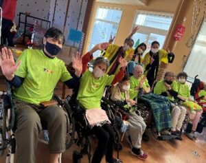 11月15日は園内活動で、おはら祭りで踊るおはら節をおそろいのT-シャツを着て踊りました。職員・利用者共に夏祭りで使用したお神輿を中心に踊りました。おはら節を懐かしむ利用者も居てみなさま元気に踊られました。おはら節を踊った後は、秋にちなんだカラオケ大会を行いました。窓を開け、秋風を感じながら歌い、少しは秋を感じることができたのではないかと思います。活動後は、レストランで皆さま交流されながらおやつを食べ最後の最後まで楽しまれていました。普段と違う表情が見る事ができ、職員一同嬉しく思います。