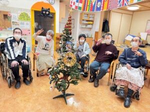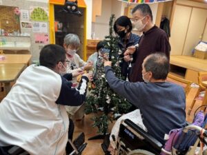 12月といったら一年で最も盛り上がるイベントのクリスマスがやってきます。コルテでは12月に入って早速クリスマスツリーの飾り付けを行ないました。仕舞ってあったツリーを出して組み立てて、皆でワイワイ騒ぎながら協力して飾り付けました。煌びやかな素敵なクリスマスツリーを完成させました。完成するとテンションが上がって皆でツリーと一緒に写真撮影会になりました。クリスマスの事を考えて自然に楽しいスマイルが出ました。一足早くクリスマス気分を満喫して、本番はもっと楽しくなりそうな予感がするのでした(*^_^*)