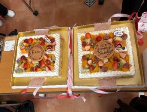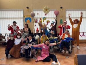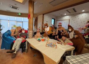 12月9日(火)パソ松ヶ尾館では慶会が開催されました。バー店員に扮した職員が次々に登場しいざパーティースタート!おかしやジュースを楽しみながら利用者のみなさまで和気あいあいとお話されていましたよ!パーティーの中盤ではスペシャルゲストのパソ・シンガーソングライターがやってきてくれ、オリジナルソングを披露して頂き大盛り上がり(*^_^*)♪最後には特大ケーキで今月お誕生日のみなさんをお祝いしました✌ケーキはひとりずつグラスでとりわけお洒落なケーキの完成!名前入りクッキーもとっても嬉しそうにされていました!今月お誕生日のみなさん、おめでとうございます!