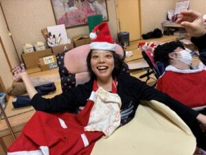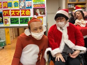 12月24日はクリスマスイブ!コルテでは12月の慶会としてクリスマス会を行ないました。皆様サンタの衣装を着て気分を盛り上げ、本命のビンゴ大会!番号が呼ばれるたびに「やったー!番号あった~~!」「こっちは無いよう↓」と一喜一憂しながらラスト一つになったら「リーチ!」と大きな声で宣言!ビンゴになったらさらに大騒ぎして喜び爆発しました!でも今日はクリスマスイブ。一位の利用者様から景品は配られましたが、皆さんにも素敵なプレゼントが配られ、皆様満面の笑みでクリスマス会は終了しました。今夜は美味しい物を食べながらプレゼント眺めて過ごそう(*^_^*)
