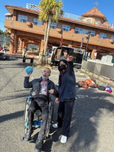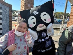 パソ中山では12月27日土曜日にウィンターフェスティバルが行われました。当日は鹿児島のプロバスケットボールチームの鹿児島レブナイズの選手とマスコットのレブニャンが来てのバスケット体験があり大いに盛り上げてもらいました。利用者の皆さん選手が見ている前でフリースローを行い、緊張しながらシュートを決めると満面の笑みで喜ばれました。選手やレブニャンとも記念撮影をしてもらい、いつも以上の笑顔を見せておられました(*^_^*)昼食はキッチンカーコーナーからロコモコを買って食べました。その他にもしめ縄作りの体験コーナーやおしるこ振る舞い等々、今年最後の土曜日を満喫出来ました。来年も楽しい事がありそうです(^^♪