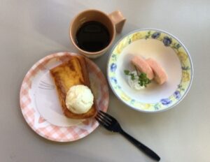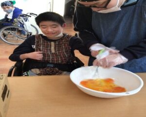 1月20日(火)エルピソの慶会では、フレンチトースト作りを行いました。 午前の流れは、卵液作りを利用者様と一緒に混ぜる作業まで一生懸命に取り組まれていました。午後からは焼きに入り、焼きあがった後のトッピングを午前と同じく利用者様と一緒に作業を行い、その後皆さん出来上がったフレンチトーストを頂きました。利用者様からは「とてもおいしかった」、「また作って食べてみたい」などの声を頂きまして笑顔もあふれていました。