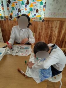 1月8日土曜日、来夢では凧あげを行いました。まずはお空に飛ばす凧を作ってみよう★カラーペンを使って好きな絵や言葉、思い思いのキャラクターを書いて、自分だけのオリジナル凧の完成!糸を巻き付けたり結んだりの過程も頑張りました。次は凧を飛ばしに近くの公園へ!お天気も良くて青空、風も吹いていて絶好の凧あげ日和です!風に乗って空高く飛んでいく凧にお子様もみんなで大喜び♪高く飛んでいく凧のように飛躍の年になりますように、みんなで一年たくさん楽しいことがあるといいね。と願いを込めながら凧あげを目いっぱい楽しむことができた一日になりました。
