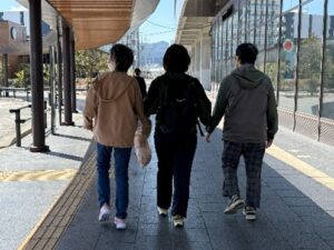 去る3月13日、利用者様4名と谷山駅から電車に乗って鹿児島中央駅へ行ってきました。流れる景色を楽しみながらあっという間に鹿児島中央駅に到着、駅ビル(アミュプラザ)内の飲食店で昼食を摂った後ウインドーショッピングを楽しまれました。美味しそうな食べ物、可愛い洋服、奇麗なアクセサリー、推しのグッズ等に目を輝かせてご覧になられていました。