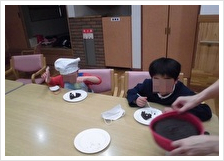 2月9日(土)遊遊にて調理体験でショコラケーキ作りをしました。役割分担をそれぞれ決めて、取り組むことにより、友達との協調性や作る事への楽しさの共有を目的に行なっています。何をしたいかを職員が質問していく事で、「〇〇をしたい」「××君してもいいよ」等自分でしたい事や友達に譲りながら料理作りを楽しんでいました♪電子レンジで温めた後の出来上がったケーキを見て、目を輝かしてふっくらと膨らんでいる様子を見つめていました★最後にケーキのデコレーションをそれぞれ行い、おいしそうに食べていました♪