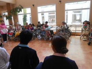 午前中は、新入職員の自己紹介に始まり、歓迎の意味を込めて、利用者の方々から演奏のプレゼントがありました。